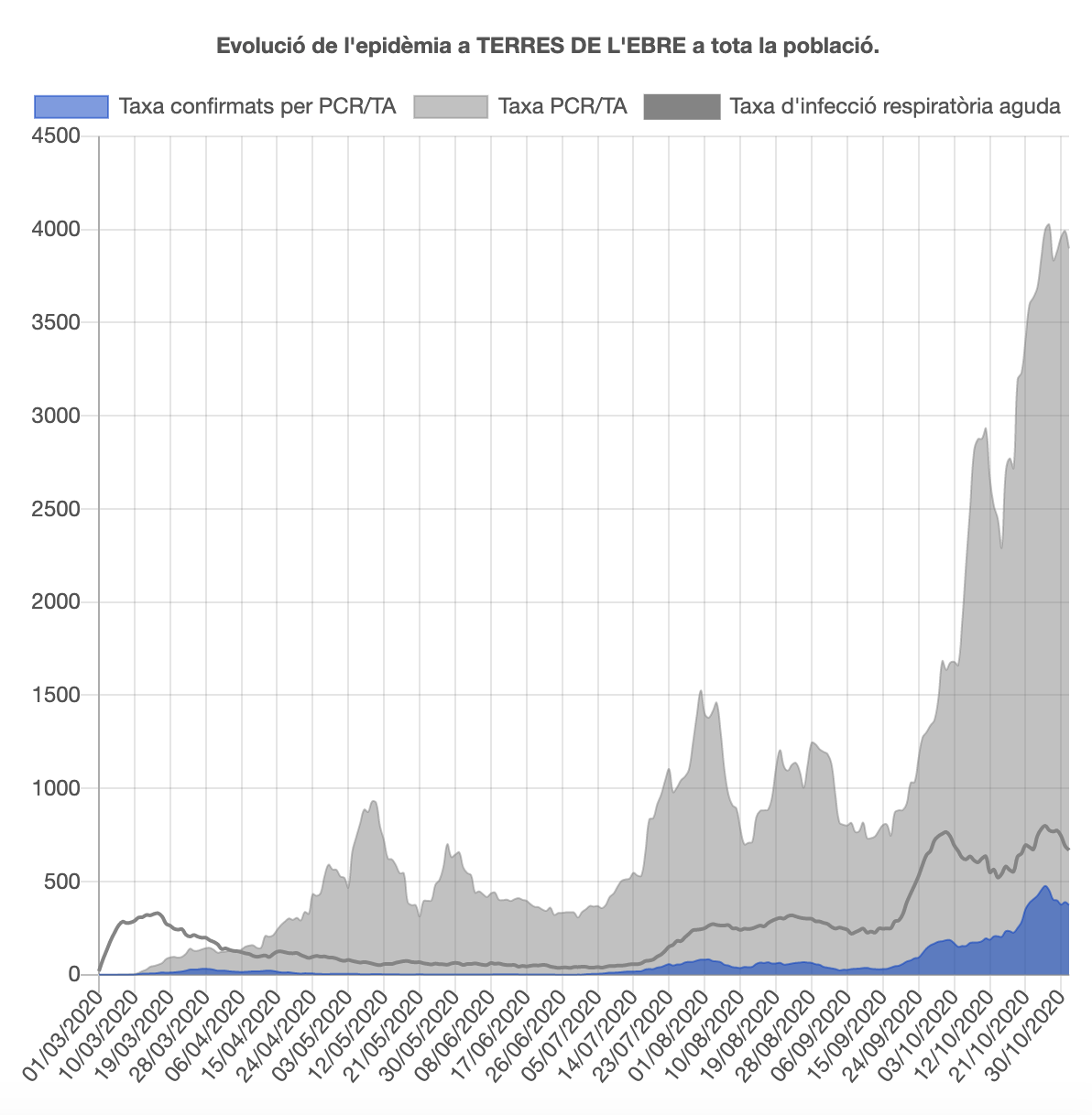 La regió sanitària de les Terres de l’Ebre acumula, des de l’inici de la pandèmia, 4.050 casos confirmats per PCR o antígens, 71 més que en el balanç anterior, 4.262 si es tenen en compte la resta de proves. En aquesta regió han mort 80 persones, dues més que en l’últim balanç. Entre el 26 d’octubre a l’1 de novembre es van notificar 6 defuncions, 4 en l’interval anterior.