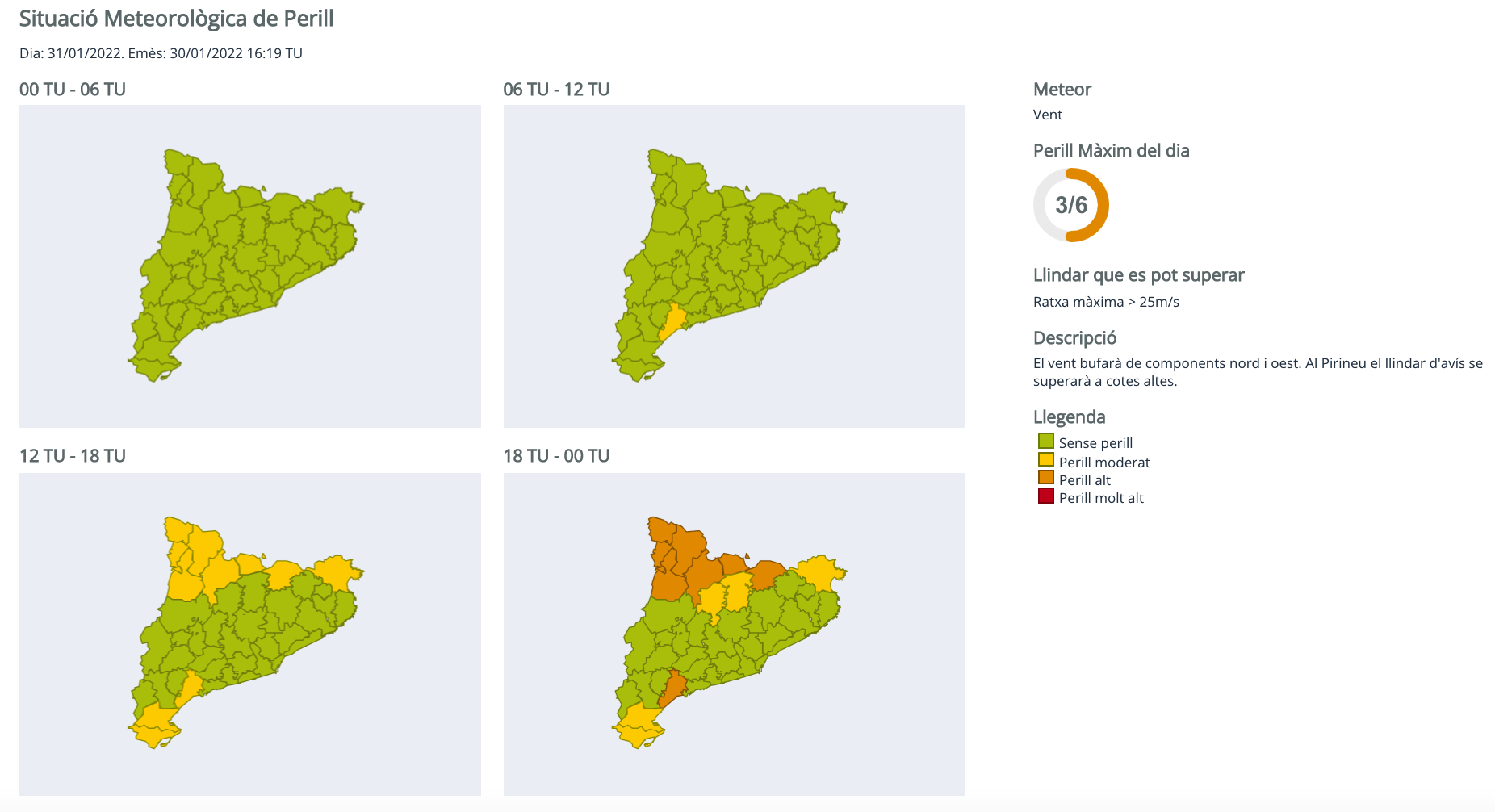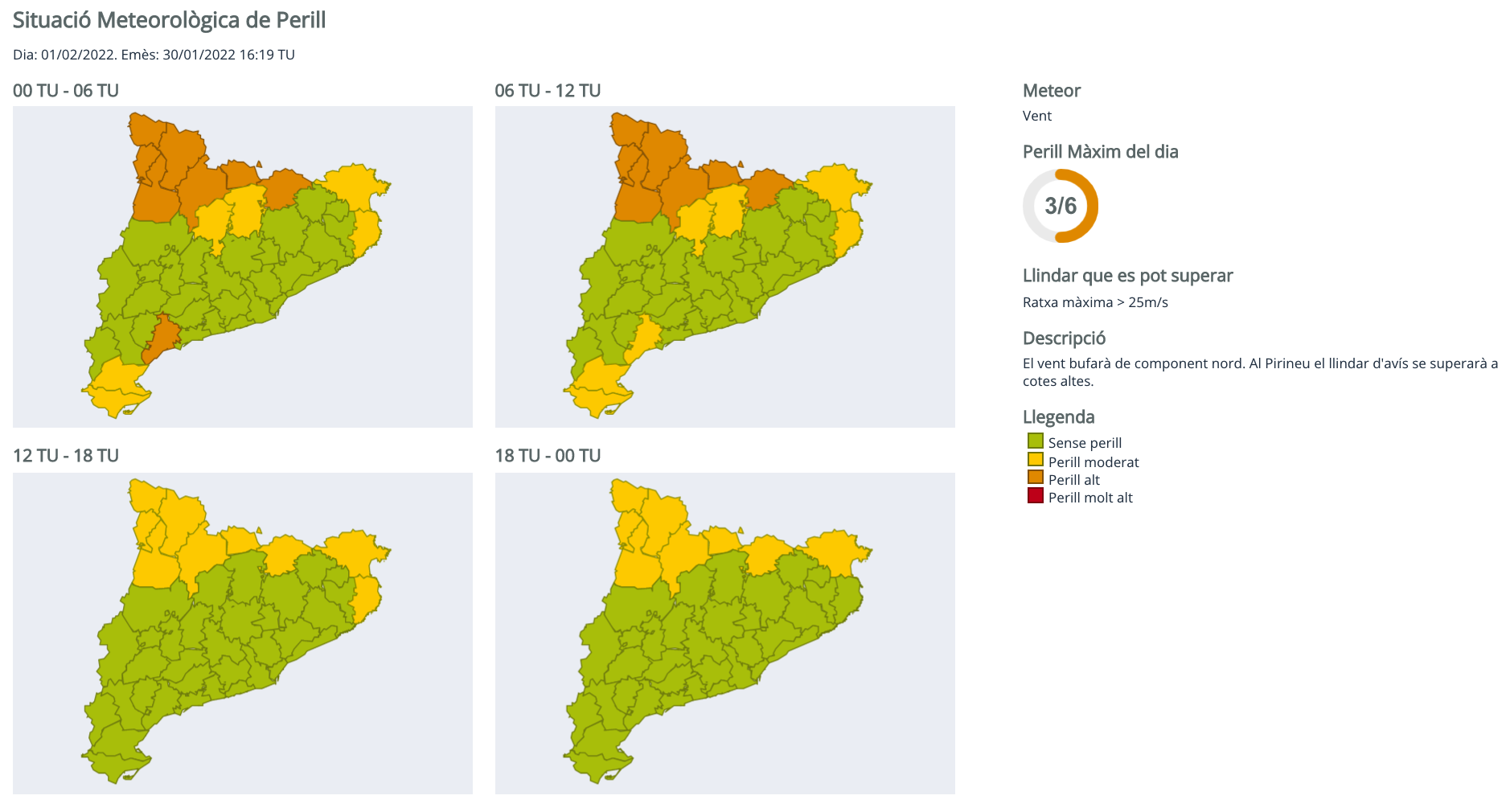 El mestral anirà enfortint amb el pas de les hores, i serà sobretot durant la tarda i nit quan hi haurà les ratxes més fortes. Demà el vent continuarà bufant molt fort a l’Ebre fins al migdia. El Meteocat té actiu un avís de perill per vent que afecta 14 comarques de tot Catalunya.