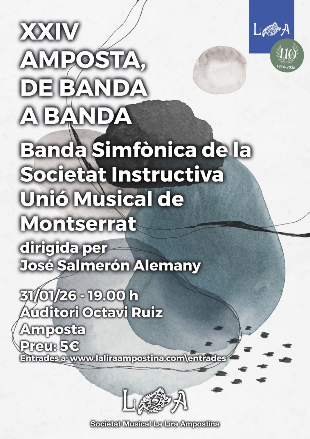 Enguany, la protagonista serà la Banda Simfònica de la Societat Instructiva Unió Musical de Montserrat, dirigida pel mestre José Salmerón Alemany. La formació arriba a Amposta després d’haver celebrat el seu centenari l’any passat, un moment històric que reafirma la seva trajectòria i el seu compromís amb la música de banda.
