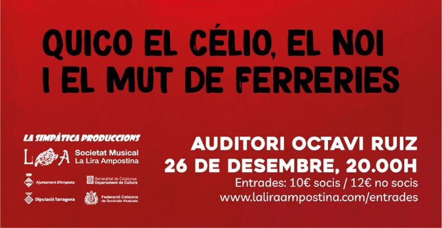 Aquest dijous 26 de desembre, a les 20:00 h, l’Auditori Octavi Ruiz d’Amposta es convertirà en l’escenari de “Lo Misteri de Nadal”, un espectacle de la mà del grup Quico el Célio, el Noi i el Mut de Ferreries.