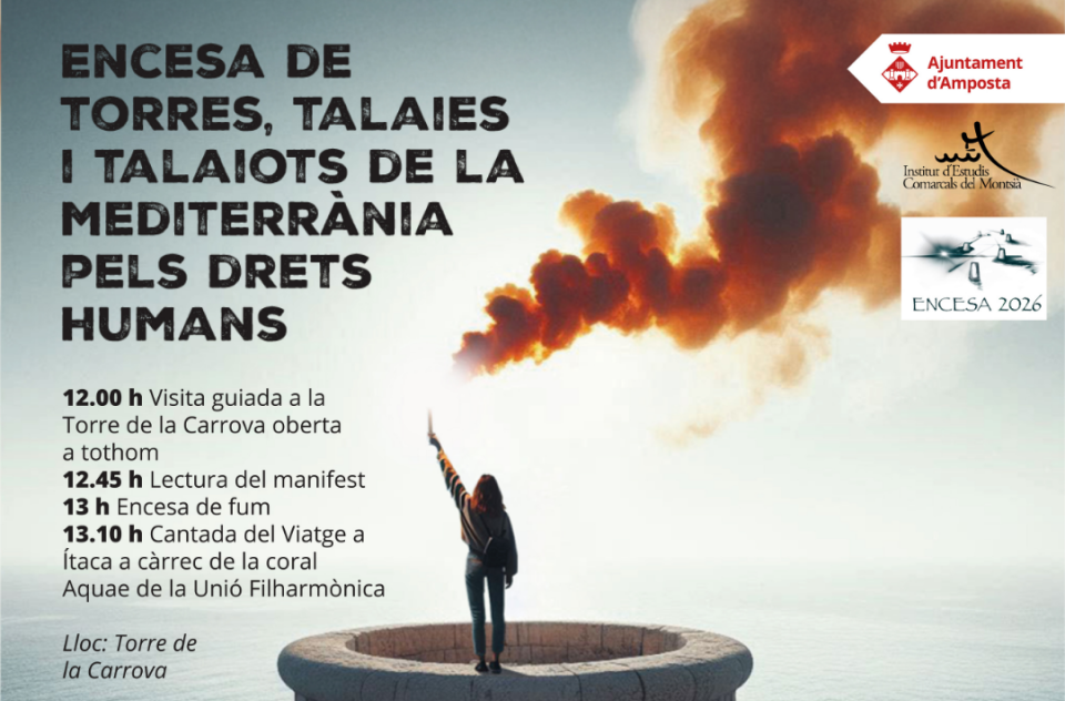 A Amposta, la jornada començarà a les 12 del migdia amb una visita guiada oberta a tota la ciutadania a la Torre de la Carrova. Tot seguit, tindrà lloc la lectura del manifest, l’encesa de fum i una cantada del “Viatge a Ítaca”, a càrrec de la coral Aquae de la Unió Filharmònica, en un acte que combinarà patrimoni, cultura i compromís social.