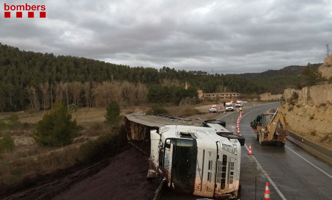 Els Bombers de la Generalitat han actuat amb dues dotacions en un accident de trànsit a l’N-420, a Caseres, a la Terra Alta. L’avís s’ha donat quan passaven deu minuts de dos quarts de sis del matí d’aquest divendres dia 7 de gener. Un camió que transportava pinyolada ha bolcat al quilòmetre 782, afectant la circulació. El conductor ha resultat il·lès i a hores d’ara s’estan duent a terme les tasques pertinents per retirar el vehicle. El Servei Català de Trànsit (SCT) informa que, a causa d’aquest fet, hi ha retencions de circulació en ambdós sentits de la marxa i s’està donant pas alternatiu.