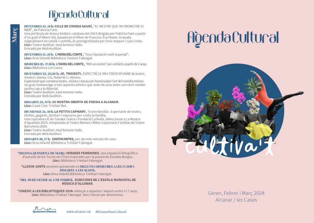 Amb el nou any 2024 l’Ajuntament d’Alcanar torna a apostar per la cultura amb una nova edició de l’agenda Cultiva’t. Sobretot es tracta d’una programació de qualitat per oferir un oci alternatiu a la ciutadania, però que al mateix temps també convidi a la reflexió social.