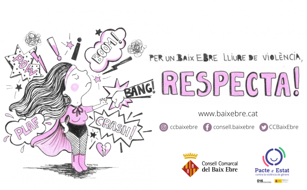El Consell Comarcal del Baix Ebre també ha posat en marxa una campanya de sensibilització i prevenció contra la violència masclista amb el lema “Per un Baix Ebre lliure de violència. Respecta!” amb una il·lustració de Mentxu Pérez. S’han editat 800 llibretes que es distribuiran entre l’alumnat dels centres educatius de la comarca i es farà difusió de la campanya a través de les xarxes socials i mitjans de comunicació.