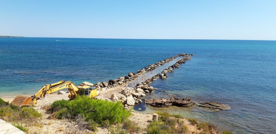 Tot i les pedres de grans dimensions que el formen, va quedar completament trencat per la meitat. L’alcaldessa del Perelló Maria Cinta Llaó, destaca que aquesta actuació de millora que s’està duent a terme, protegirà de les onades aquesta part de costa i deixarà la platja més protegida de les futures marees.