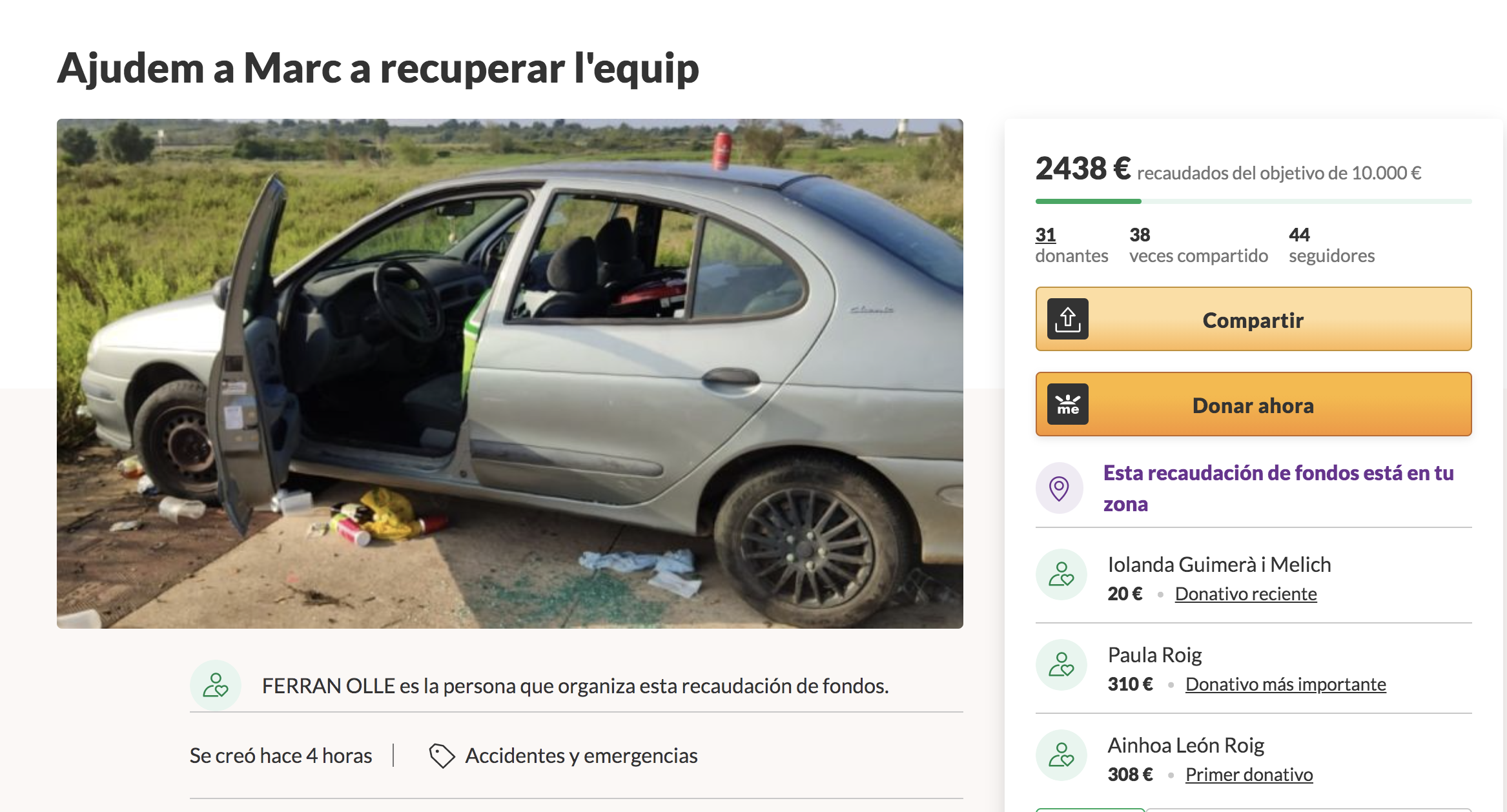 Amics, coneguts i familiars del discjòquei d’Ulldecona, mitjançant la plataforma “Gofundme”, han obert un crowdfunding per poder ajudar a recuperar la inversió. En menys de 24 hores ja s’ha recuperat el 20%.