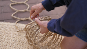 La mostra ha estat comissariada per Sara G. de Ubieta i Cris Noguer, dos creadores que habiten l’àmbit del disseny i que fa temps que exploren les possibilitats de tota mena de materials sostenibles, una recerca que de rebot les ha apropat a l’artesania. En el cas de Mas de Barberans s’han fixat també en el Racó de les Fibres Vegetals, el viver/jardí on les artesanes de la pauma cultiven el margalló, perquè és un aspecte que connecta amb el concepte de la cura del medi ambient.
