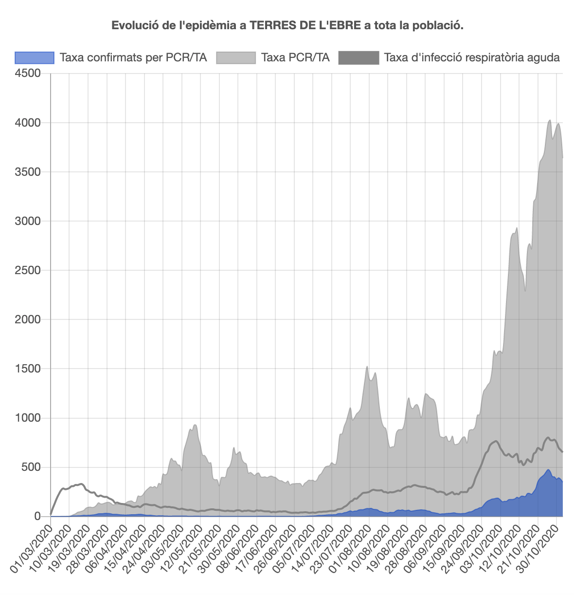 La regió sanitària de les Terres de l’Ebre acumula, des de l’inici de la pandèmia, 4.152 casos confirmats per PCR o antígens, 102 més que en el balanç anterior, 4.366 si es tenen en compte la resta de proves, és a dir, en total 104 positius més. En aquesta regió han mort 80 persones, cap respecte l’últim balanç. Entre el 27 d’octubre i el 2 de novembre es van notificar 7 defuncions, 4 en l’interval anterior.