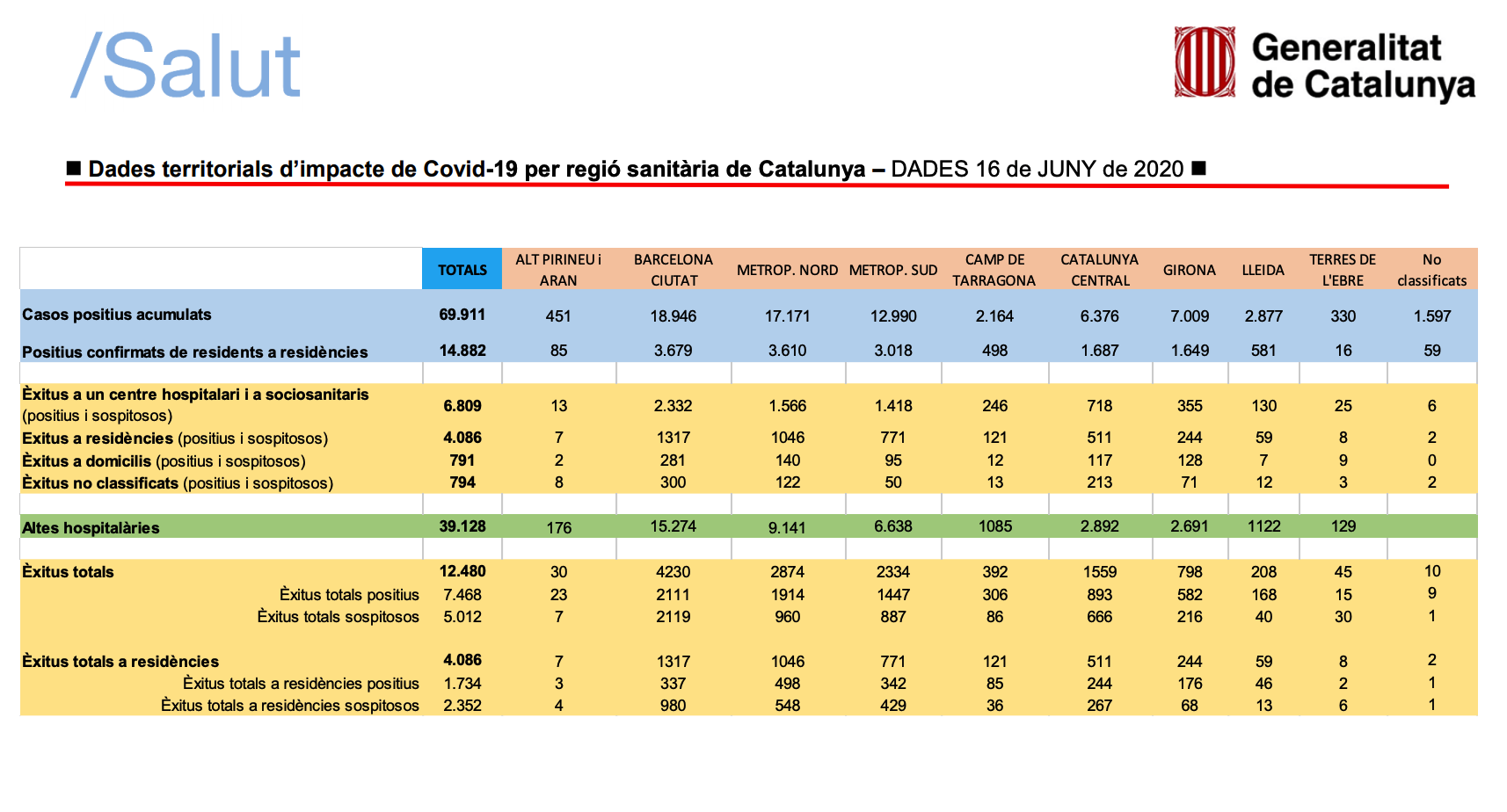 El Departament de Salut informa que fins aquest dimarts, 16 de juny, a les Terres de l’Ebre hi ha hagut un total de 330 casos positius acumulats de coronavirus SARS-CoV-2. Els dos últims casos daten del 3 i el 9 de juny. La xifra de casos sospitosos no es facilita perquè, segons argumenta Salut, ja es fan proves a tots aquests casos des de l’atenció primària.
