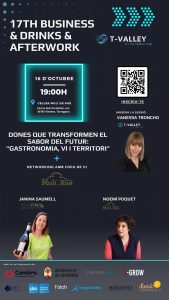 El proper 16 d’octubre a les 19h, el Celler Molí de Rué (Carrer dels Portalets, s/n de Vinebre) acollirà una nova edició del Business & Drinks & Afterwork organitzat per T-Valley, que celebra ja la seva 17a edició, consolidant-se com una trobada de referència per al teixit empresarial i innovador del territori.