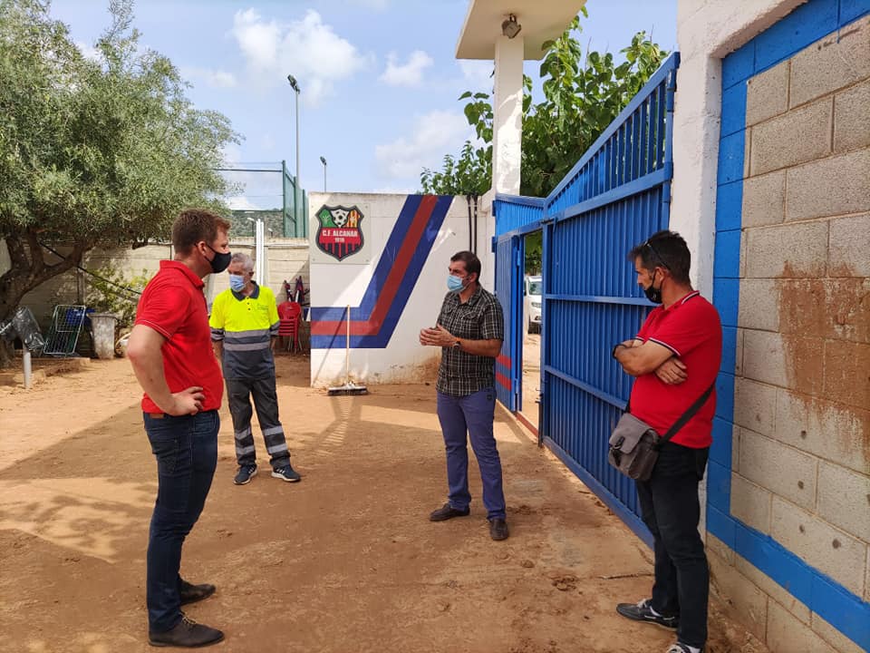 L’Ajuntament d’Alcanar ha rebut la visita del representant territorial de l’Esport a les Terres de l’Ebre, Joan Barberà, i de personal tècnic del Departament d’Esports de la Generalitat. Jordi Bort, regidor d’Esports, i personal tècnic de l’Ajuntament els han acompanyat a la zona esportiva més afectada, la Fanecada, on les pluges han causat unes afectacions molt importants al camp municipal i a les zones adjacents.