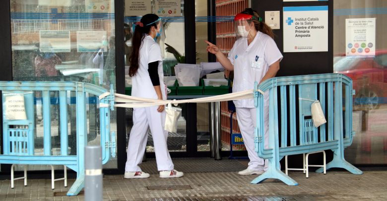 En una ala de la primera planta del centre d’atenció primària ampostí, la metgessa i la infermera que assisteixen aquest dijous casos respiratoris es mantenen “aïllades” a la consulta fins que acabi el torn. A primera hora ja han atès un pacient sospitós i això les obliga a no sortir de l’habitacle ni treure’s l’equipament de protecció fins que les rellevin. “No podem sortir per no contaminar perquè hem estat amb un pacient amb sospita. Cada pacient que s’atén, ens canviem l’equip de protecció”, ha explicat la doctora Bonet.
