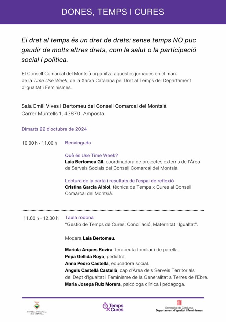 Des del Consell Comarcal del Montsià impulsen estes jornades per promoure una organització del temps més equilibrada i justa per a tots els sectors de la societat.