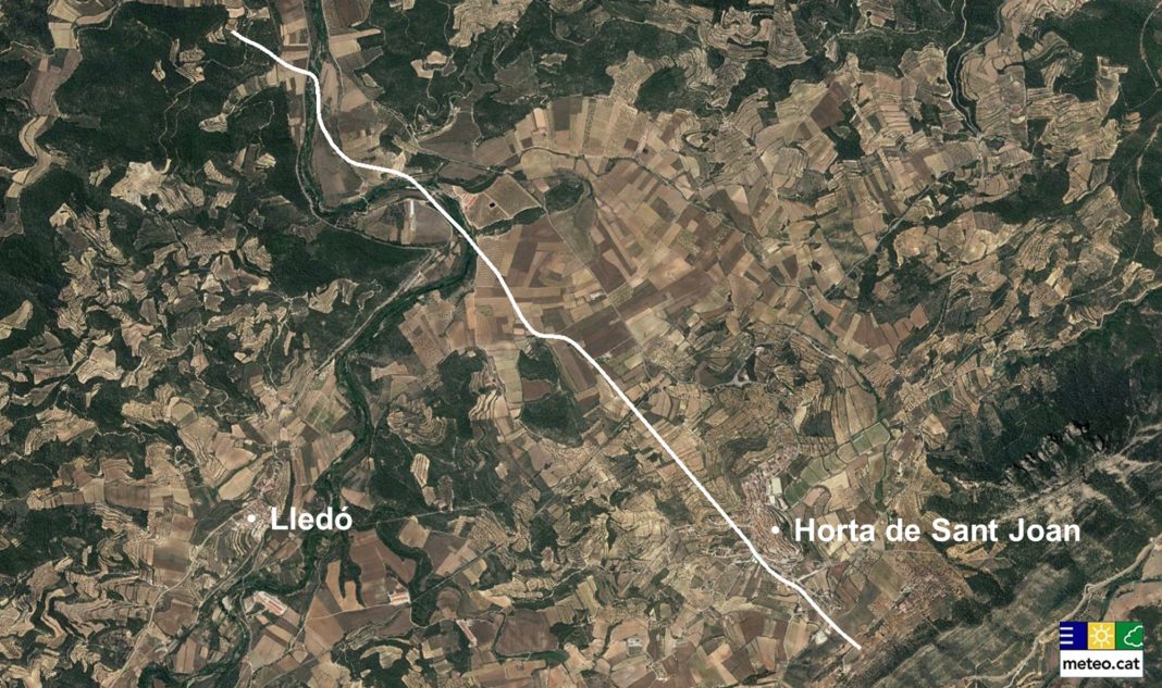 Entre aquest darrer punt i el nucli urbà d’Horta de Sant Joan es van observar oliveres amb branques trencades, diverses de tombades i algunes arrancades de soca-rel. També es van detectar algunes edificacions amb danys en teulades i murs de tancament. A Horta de Sant Joan els danys es van concentrar a l’oest i al sud del nucli urbà. Les teulades de diversos habitatges es van veure afectades, a banda d’alguns coberts, l’arbrat i un mur que delimitava una finca. A banda, el vent va malmetre diverses antenes de televisió. Els danys observats s’estenien fins a la zona de les Capçades, si bé en conjunt eren lleus en aquest darrer tram.