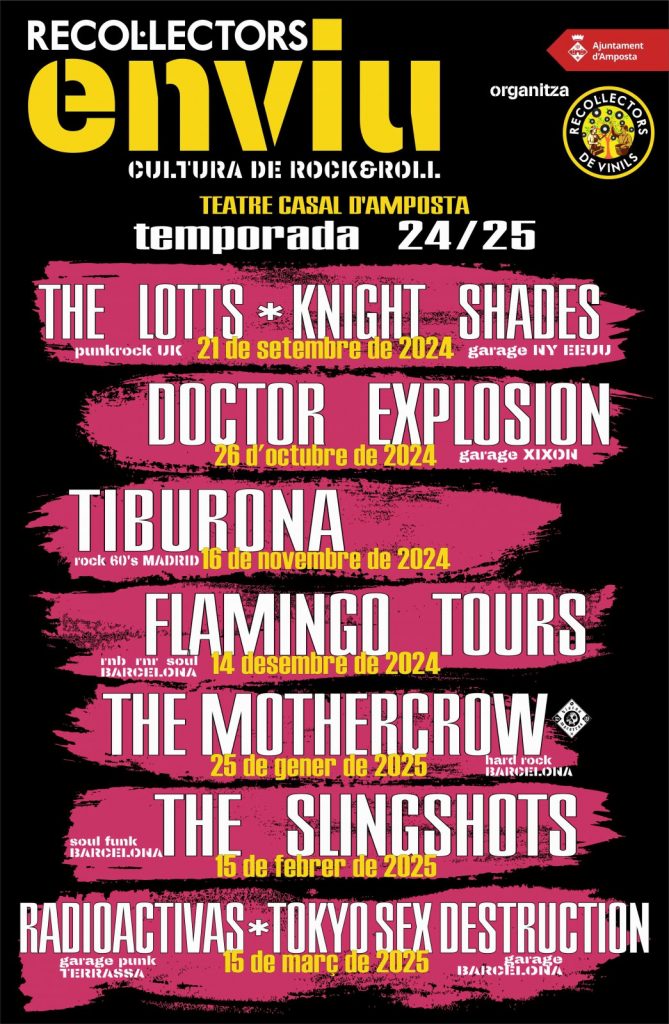 Jaume Vidal, també membre i organitzador de Recol·lectors de Vinils, ha afegit que, aquest any el festival arrencarà més prompte, concretament el 21 de setembre i ho farà amb el doble concert dels anglesos The Lotts i la banda americana de garage The Knight Shades. La temporada de concerts s’allargarà fins al mes de març i gaudirà de les actuacions de set grups més.