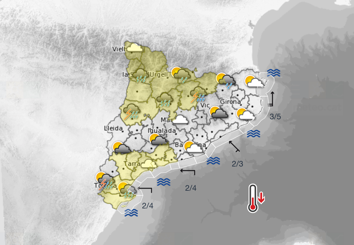Previsió @meteocat de pluges fortes ⛈ a partir del migdia i fins la matinada