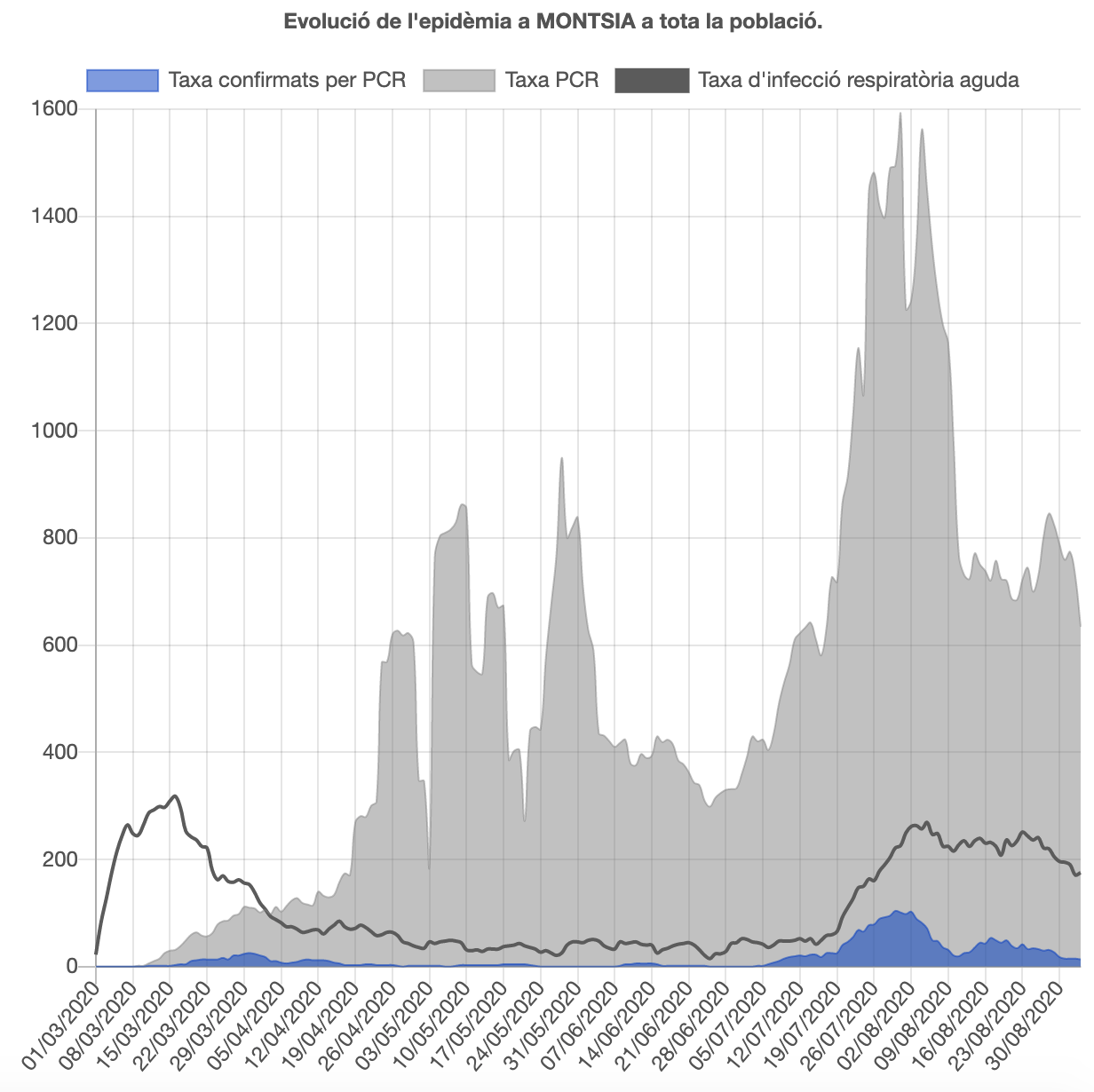 La comarca del Montsià acumula, des de l’inici de la pandèmia, 305 casos confirmats per PCR, i 343 si es tenen en compte la resta de proves, és a dir, en total 1 positiu més que ahir. En aquesta regió han mort 25 persones, cap més respecte a l’últim balanç. El risc de rebrot se situa en un nivell baix, és a dir, per sota dels 30, a 25,23. Per altra banda, la taxa de confirmats per PCR en els darrers set dies és de 13,37 per 100.000 habitants, mentre que l’Rt, la taxa de reproducció del virus, se situa en nivells baixos, a 0,60. Segons l’últim balanç hi ha 3 pacients ingressats als hospitals, dos dels quals a l’UCI.