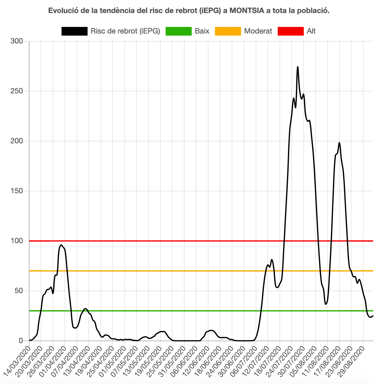 La capital del Montsià, Amposta, se situa en la primera posició pel que fa al risc de rebrot tenint en compte els municipis de més de 20.000 habitats. A més, és l’únic amb el risc de rebrot baix.