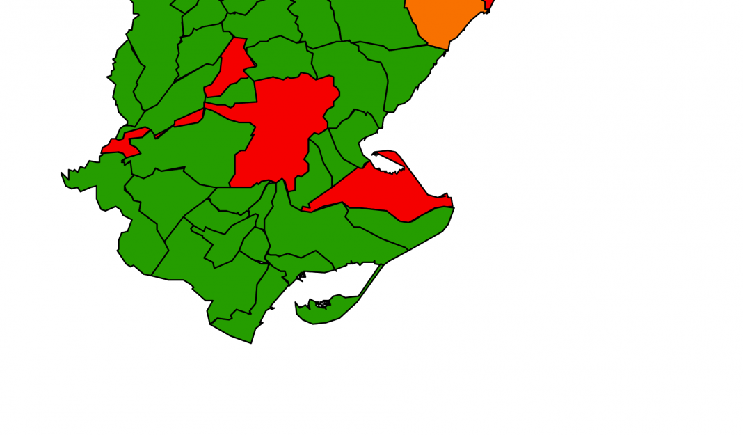 Com es pot comprovar, el Montsià és l’única comarca pintada amb color verd, l’única de tot Catalunya amb un risc de rebrot baix, és a dir, inferior a 30. Gairebé tots els municipis d’aquesta comarca tenen risc zero de rebrot, concretament son: Sant Jaume d’Enveja, La Sénia, Alcanar, Ulldecona, Freginals, Godall, Masdenverge, La Galera, Santa Bàrbara i Mas de Barberans, en canvi, Amposta té un risc de rebot de 6,09 i Sant Carles de la Ràpita de 21,94.