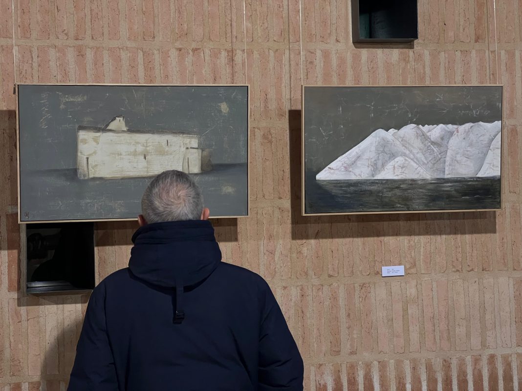 En aquesta ocasió l’artista presenta una sèrie pictòrica basada en el treball amb paper reciclat, entès com un ofici artesanal que reivindica la calma, l’observació i la repetició davant la rapidesa contemporània. El paper és arrugat i estirat per generar textures sobre les quals s’apliquen capes de color molt fines, a manera de veladures, amb contorns suaus i transicions delicades. Les composicions neixen d’un gairebé culte al silenci visual i d’una paleta cromàtica reduïda de sienes, terres, ombres i verds apagats. El resultat són obres que no s’imposen, sinó que acompanyen, evocant paisatges, magatzems i muntanyes de sal presents a la badia.