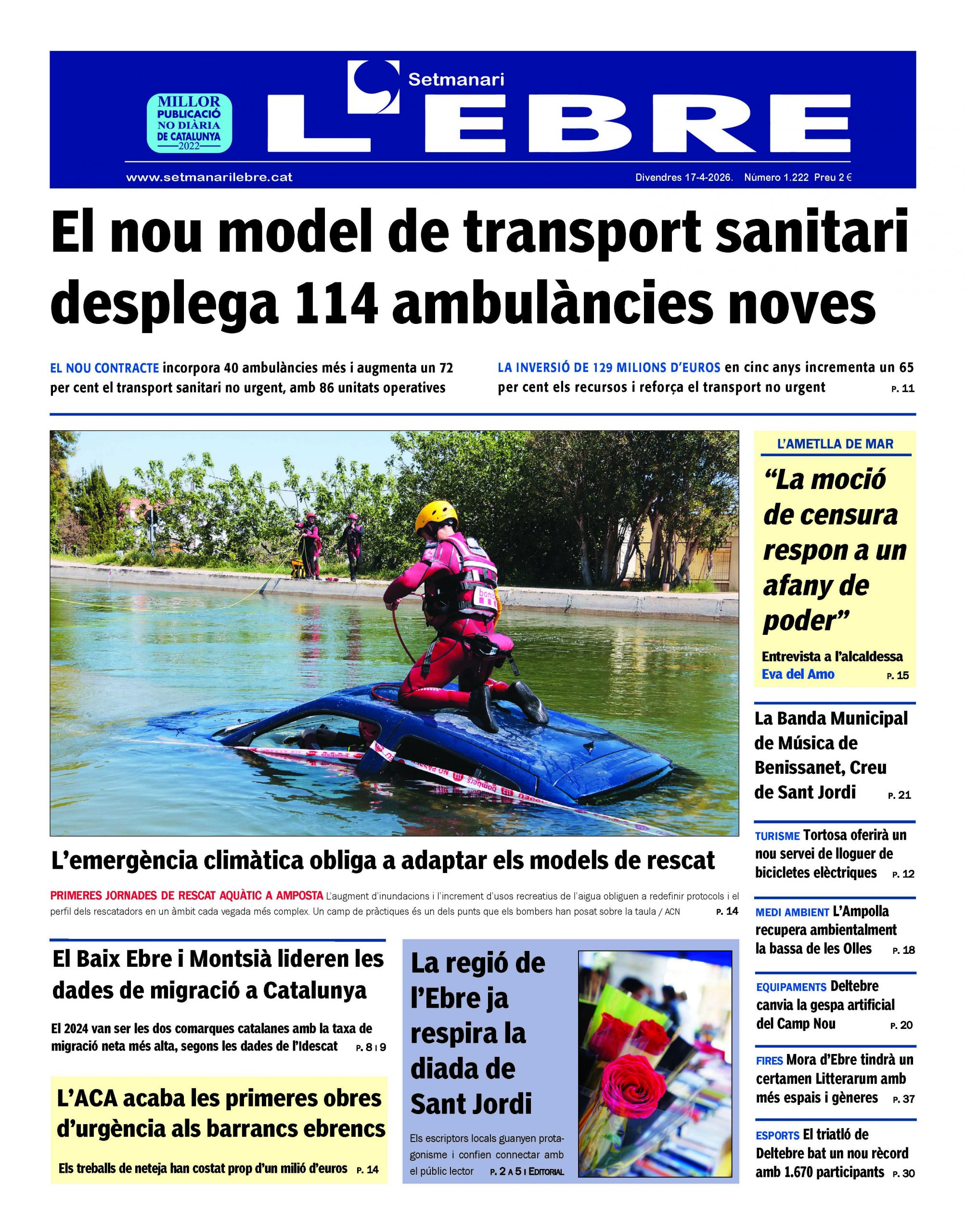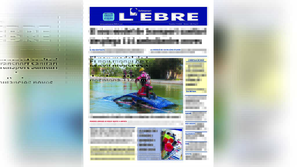 El nou transport sanitari desplegat a la regió i les jornades de rescat aquàtic, a la portada de l’edició en paper del Setmanari l’Ebre