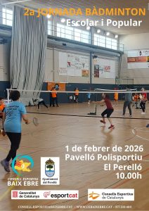 Aquest diumenge 1 de febrer, a les 10 hores, el pavelló poliesportiu del Perelló serà l’escenari d’una jornada de bàdminton, organitzada pel Consell Esportiu del Baix Ebre amb la col·laboració de l’Ajuntament del Perelló, i que s’emmarca dins dels Jocs Esportius Escolars de Catalunya i d’Esport Popular.