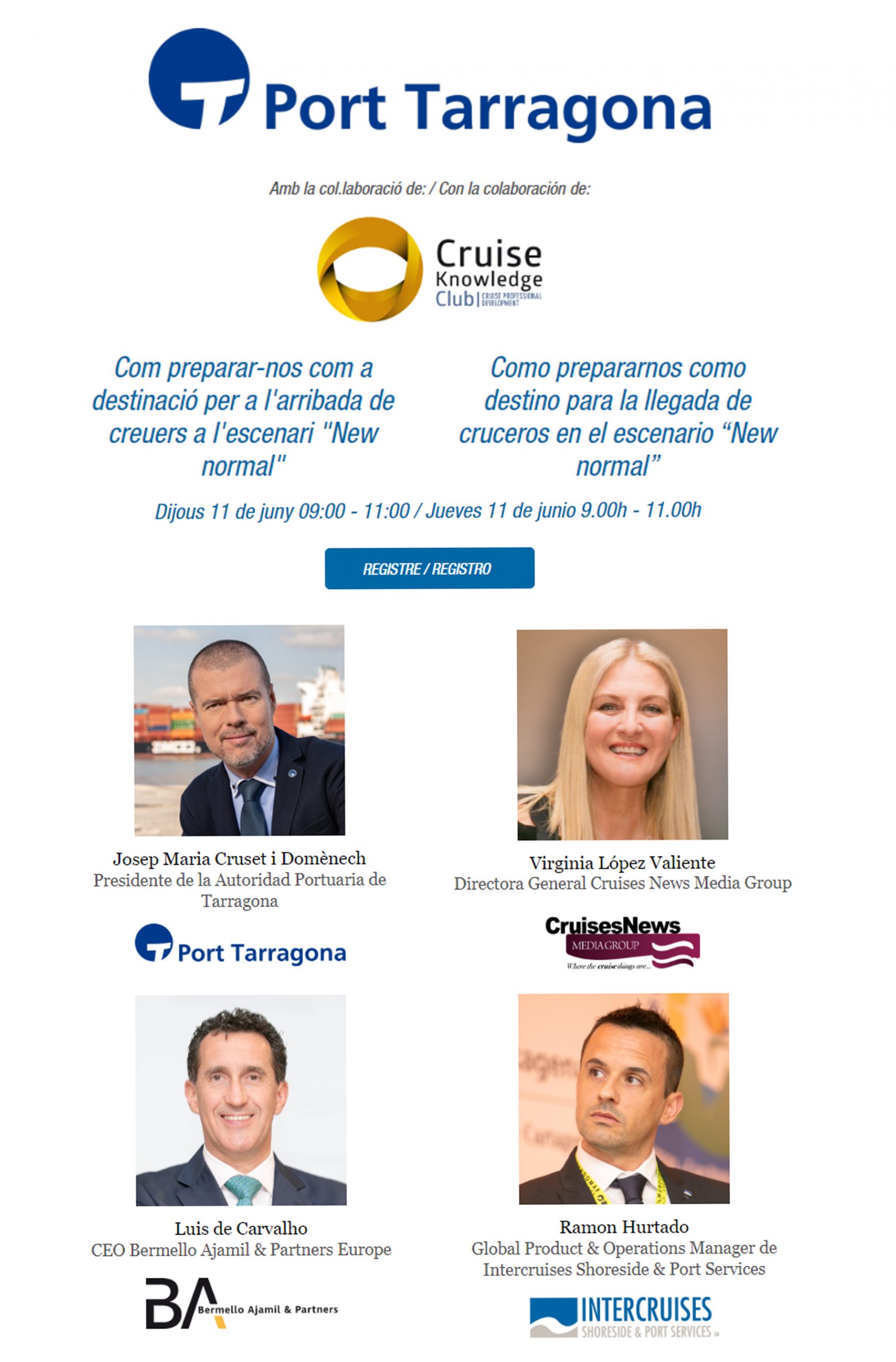 El Port de Tarragona amb la col·laboració de organitzen el proper dijous 11 de juny a les 9 h un webinar que tractarà sobre la nova normalitat al sector dels creuers. Es tracta del primer webinar que s’organitza sobre aquesta temàtica i s’adreça principalment als agents relacionats amb la destinació turística de creuers de Tarragona-Costa Daurada.