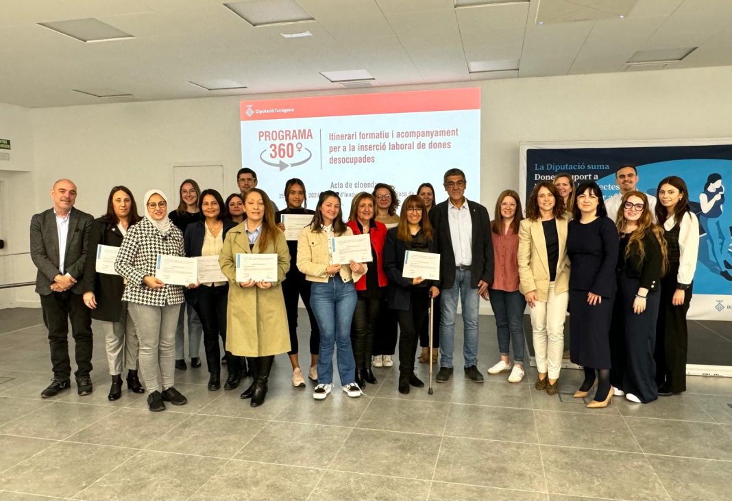 Aquest dijous, al Centre d’Innovació i Formació Boca de la Mina de la Diputació a Reus, s’ha celebrat l’acte de cloenda de la primera edició del programa Dones 360º. Impulsat per la Diputació de Tarragona en col·laboració amb la Fundación Quiero Trabajo (FQT), aquest programa ha ofert un itinerari formatiu i d’acompanyament per a la inserció laboral de deu dones desocupades de la demarcació de Tarragona.