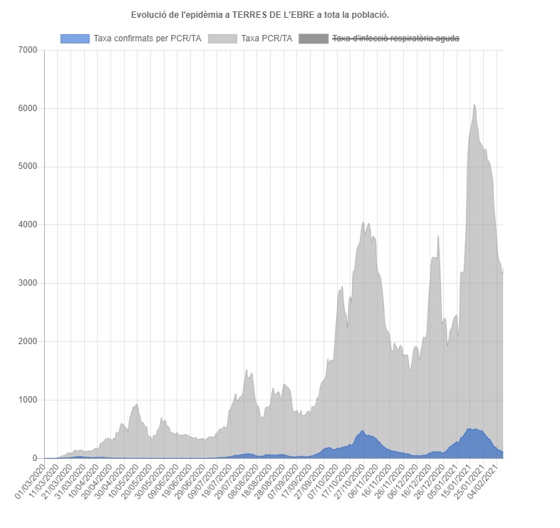 La regió sanitària de les Terres de l’Ebre acumula, des de l’inici de la pandèmia, 9.328 casos confirmats per PCR o TA, 16 més que en el balanç anterior, i 9.603 si es tenen en compte totes les proves. En aquesta regió han mort 163 persones, una més que en l’últim balanç. Entre el 3 i el 9 de febrer es van notificar 11 defuncions, 4 en l’interval anterior. Hi ha 5.938 persones vacunades de la primera dosi (+327), i 4.033 de la segona (+67).