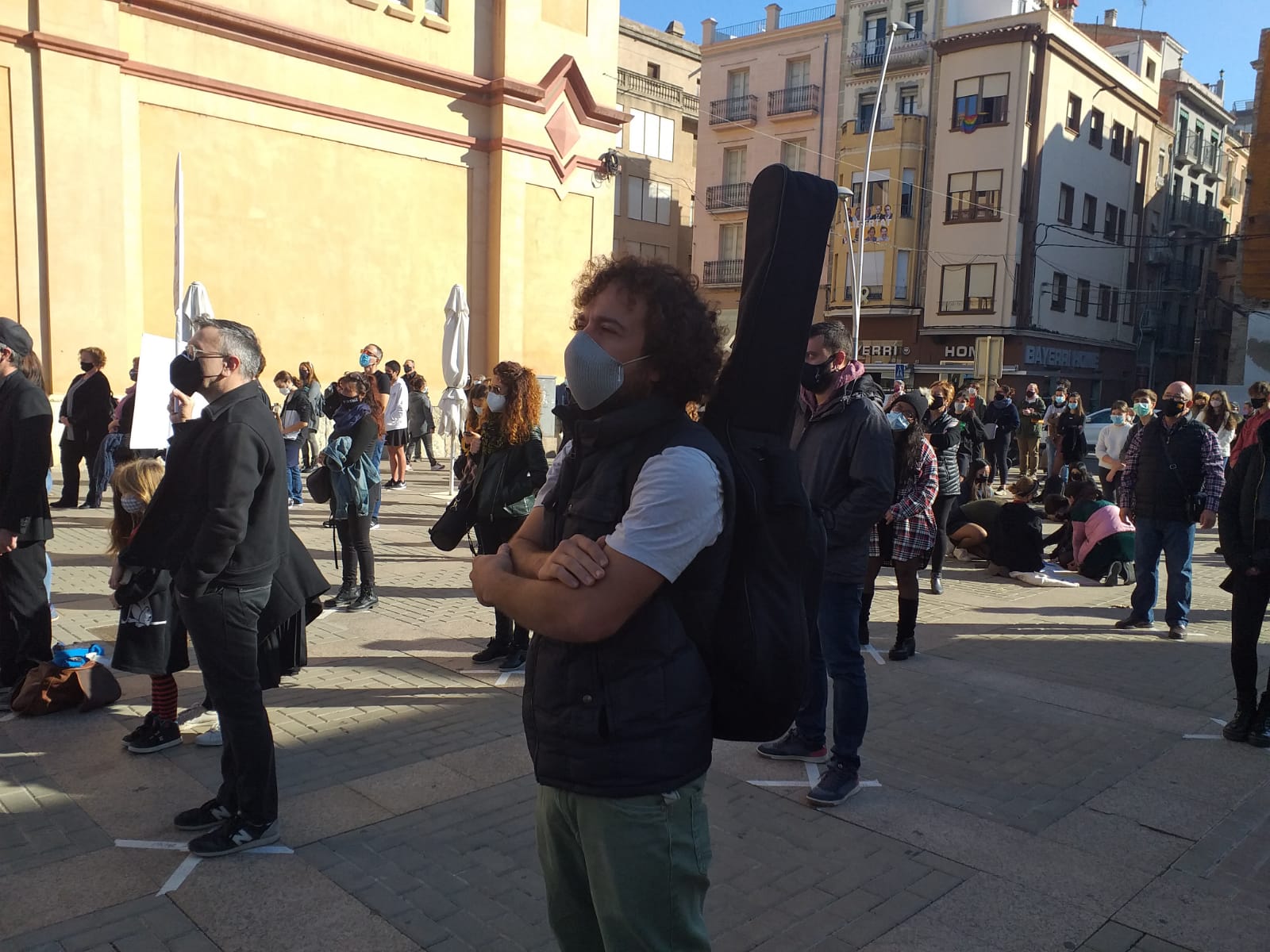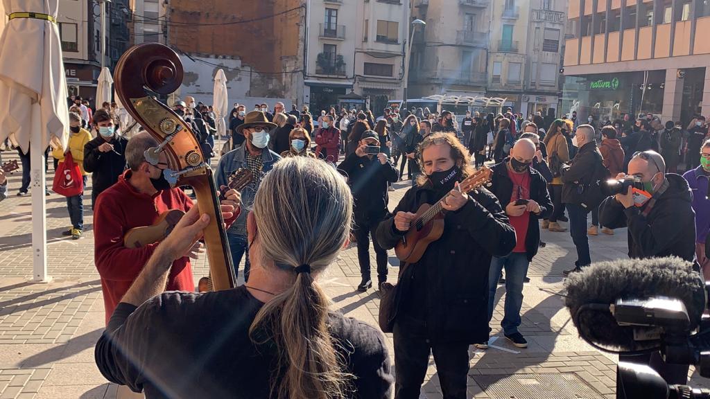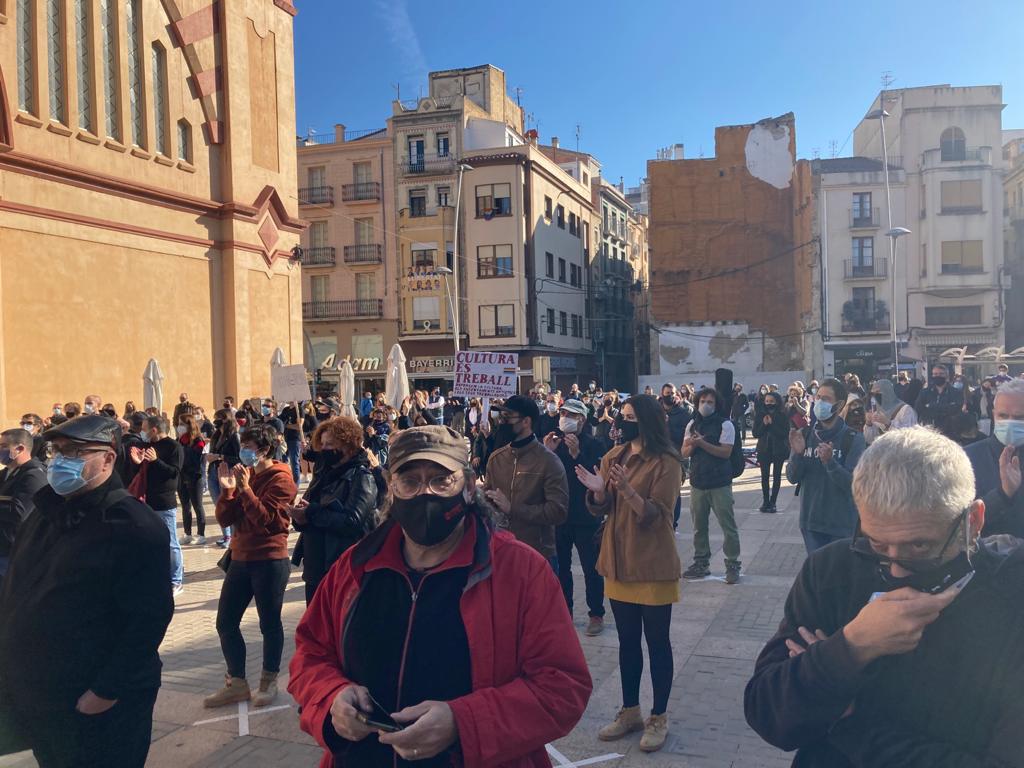 El sector Cultural de les Terres de l’Ebre està de dol i aquest dimecres ho ha evidenciat amb una concentració a Tortosa on hi han participat més de 200 persones. Vestits majoritàriament de negre per mostrar-se de dol i amb els instruments i estris a les mans han denunciat que els estan abocant a la ruïna. Artistes, ensenyants i personal tècnic del món de la Cultura han rebut el suport d’usuaris i persones d’altres sectors greument afectats per les retallades i prohibicions per la covid-19. Després d’un manifest en què no han estalviat crítiques als tractes de favor de l’església, a empreses com la del Castor o la Casa Reial, s’ha fet un minut de silenci. Només algunes tímides jotes s’han cantat per musicar la denúncia.