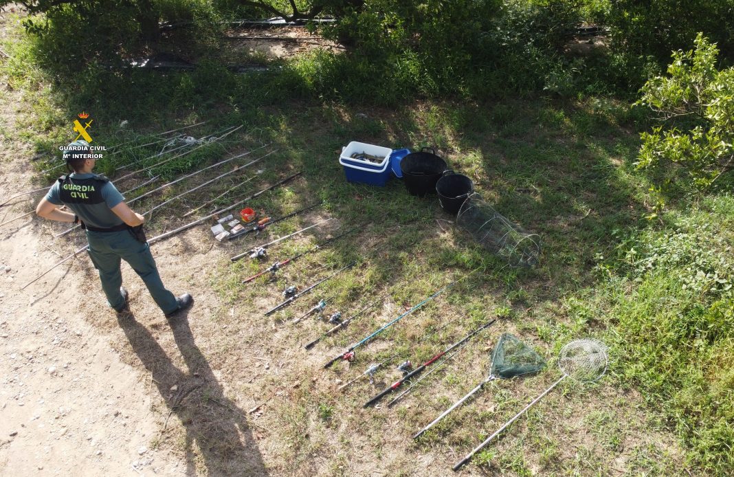 L’actuació es va produir durant un dispositiu de vigilància de la pesca sostenible en aigües continentals, centrat en els trams del riu Ebre on aquesta pràctica està regulada i limitada. Els agents van sorprendre els tres individus mentre feien servir 18 canyes de pescar actives, amb carn com a esquer, i sense llicència de pesca ni cap documentació professional.