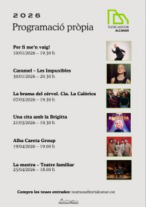 De cara al 2026, el Teatre Auditori mantindrà aquesta línia. La nova temporada es va iniciar el passat 10 de gener amb Carles Sans i l’espectacle ‘Per fi me’n vaig!’. El 30 de gener serà el torn de Caramel, de Les Impuxibles, mentre que el 7 de març s’hi podrà veure La brama del cérvol, de La Calòrica, i el 21 de març es representarà Una cita amb la Brigitta. A l’abril, completaran la programació pròpia Alba Careta Group, el 19 d’abril, i La Mestra-Teatre Familiar, el 25 d’abril.