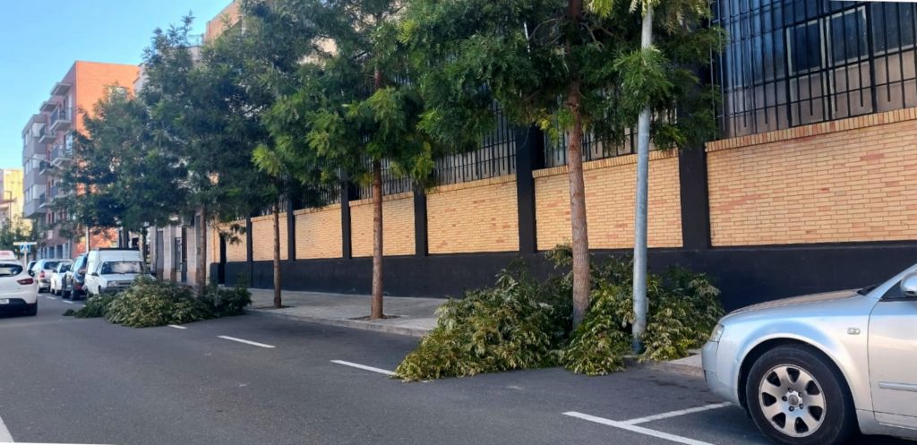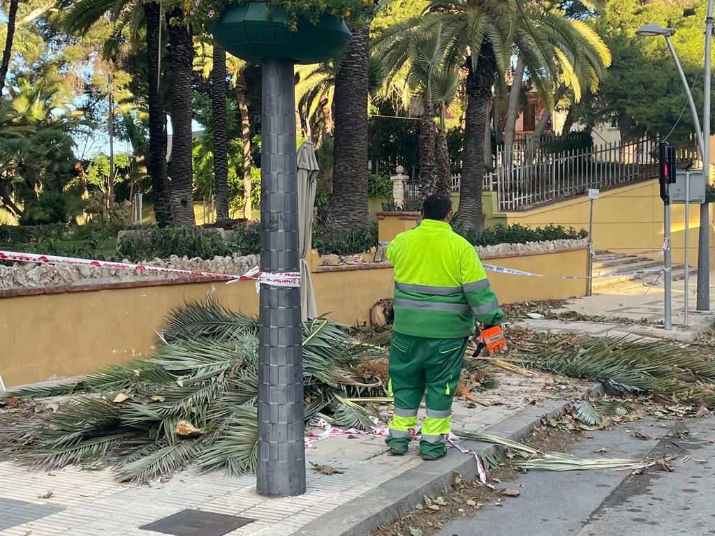 Una palmera del parc Teodor González es va precipitar sobre la vorera de l’avinguda Generalitat, prop de les escales d’accés al recinte, i també van col·lapsar altres arbres al barri del Temple o Ferreries. També va fer caure un post de suport de la línia d’enllumenat a Sant Josep de la Muntanya. Els tècnics municipals han retirat ja bona part de l’arbrat arrencat i treballen per reparar totes les incidències de l’episodi en les pròximes hores.