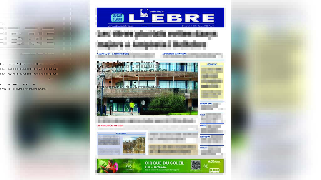 La imatge principal de la portada és per a un hotel del Baix Ebre i il·lustra la davallada en el nombre de pernoctacions al territori durant el passat mes d’agost, en què es va registrar el pitjor balanç dels últims 10 anys.