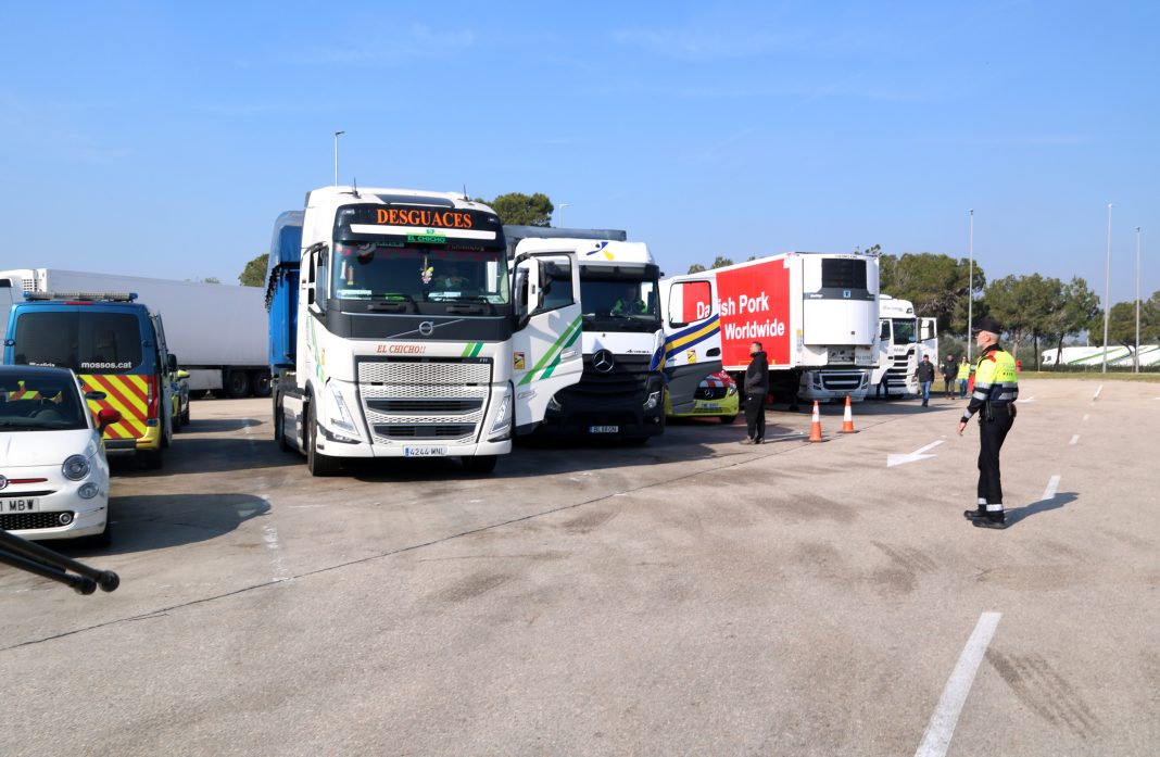 Els Mossos d’Esquadra duen a terme un macrocontrol del transport de mercaderies a l’autopista AP-7, aquest dijous al matí. Una quarantena d’efectius s’han desplegat al tram de l’Aldea (Baix Ebre) i desvien fins a l’àrea de servei del Baix Ebre aquells vehicles susceptibles d’incomplir la normativa de trànsit. Entre d’altres, els agents comproven que es compleixen els descansos, ja que la fatiga és una de les principals causes d’accidentalitat, així com la correcta estiva de la mercaderia, perquè l’excés de pes és també la causa d’un 25% dels sinistres en aquests vehicles. En aquest tram de l’AP-7 els camions no poden avançar i tenen la velocitat limitada a 80 quilòmetres per hora, una restricció que es vigila amb l’helicòpter de trànsit.