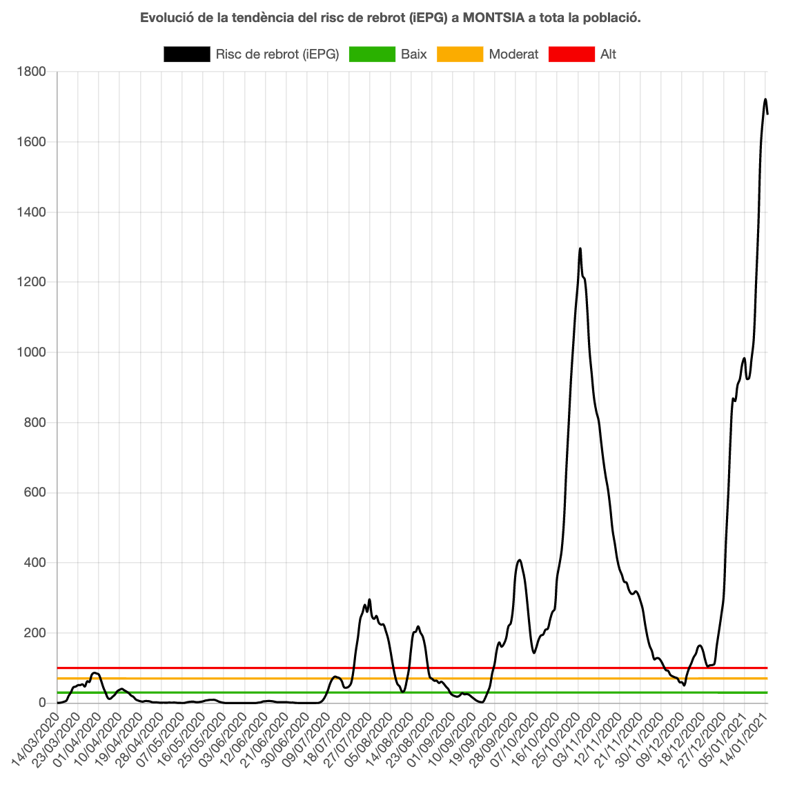 - Masdenverge: 18 positius detectats del 9 al 15 de gener, el risc de rebrot és molt alt, de 7.824,4 i l’Rt és de 3,41.