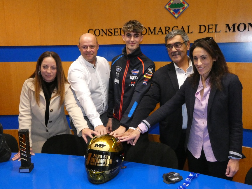 El passat divendres el Consell Comarcal del Montsià va homenatjar el pilot Iker Garcia, recent campió d’Stock del FIM Júnior GP. El reconeixement va comptar amb la presència del president del Consell, Sergi Guimerà; el delegat del Govern a les Terres de l’Ebre, Joan Càstor Gonell; la delegada d’Esports, Montse Pegueroles; i la consellera comarcal d’Esports, Neus Sancho.