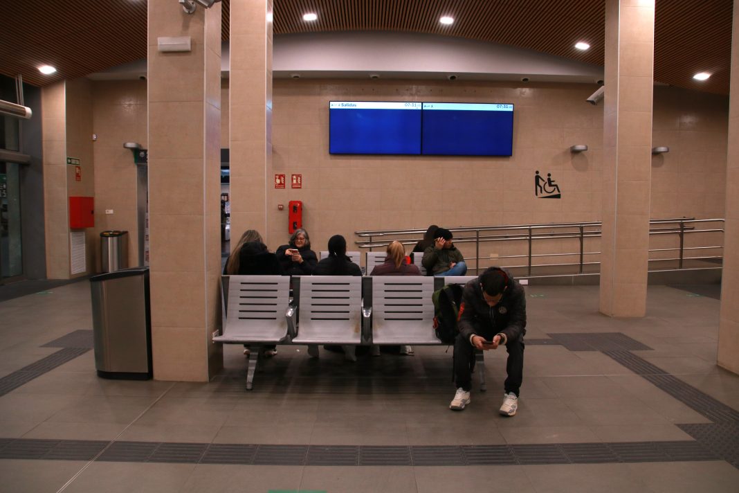 Pocs usuaris de trens s’esperen al vestíbul de l’estació de trens de Tarragona aquest dijous al matí a l’espera que es reprengui el servei ferroviari o bé que algun familiar els reculli per tornar cap a casa. Les andanes estan buides de viatgers, només hi ha treballadors de seguretat i de Renfe, i a les vies hi ha aturats cinc combois. Diversos informadors expliquen els passatgers que arriben a l’estació que no hi ha servei. La Marga, una viatgera de l’R-16, procedent de Tortosa, que ha agafat aquest tren a l’Ametlla de Mar, està indignada perquè no els han informat fins a Vila-seca que el regional acabaria el trajecte a Tarragona i també perquè no els ha ofert cap servei de transport alternatiu. “És una merda, és una incertesa”, ha dit.