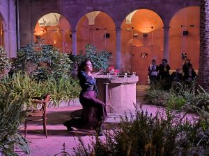 La companyia Euterpe, amb l’acompanyament musical de Jacob Cordover, va oferir un recital, on les actrius van iniciar la representació des de les finestres del primer pis del claustre, per posteriorment baixar a l’espai central i donar vida a textos de referents com Maria Mercè Marçal, Frida Kahlo o Montserrat Abelló. Entre les veus interpretades també hi va destacar la de l’actriu jesusenca Gemma Ginovart.