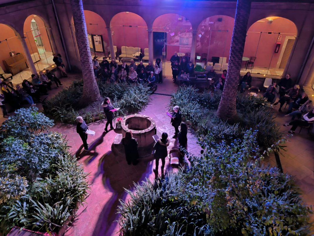 La companyia Euterpe, amb l’acompanyament musical de Jacob Cordover, va oferir un recital, on les actrius van iniciar la representació des de les finestres del primer pis del claustre, per posteriorment baixar a l’espai central i donar vida a textos de referents com Maria Mercè Marçal, Frida Kahlo o Montserrat Abelló. Entre les veus interpretades també hi va destacar la de l’actriu jesusenca Gemma Ginovart.