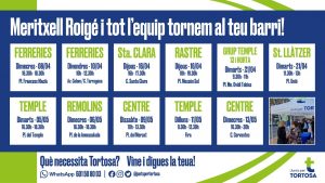 La presidenta de Junts per Tortosa, Meritxell Roigé, ha explicat que la iniciativa respon a la voluntat de “tornar al carrer, seguir escoltant la gent i posar el focus a tots i cadascun dels barris de Tortosa“.