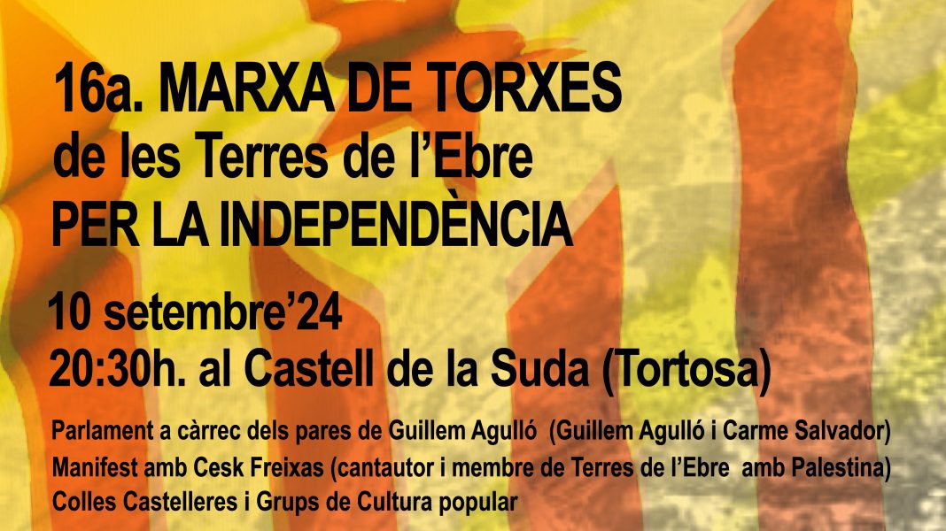 Per setzè any consecutiu, el 10 de setembre, Tortosa acull la Marxa de Torxes per la Independència. Aquesta manifestació de l’independentisme a les Terres de l’Ebre, s’ha consolidat com la més gran del territori comptant cada any amb centenars de persones marxant pels carrers del nucli antic de Tortosa. La Marxa de Torxes és organitzada per la ‘Comissió 11 de setembre’ de les Terres de l’Ebre i està formada per persones i entitats de la societat civil organitzada.