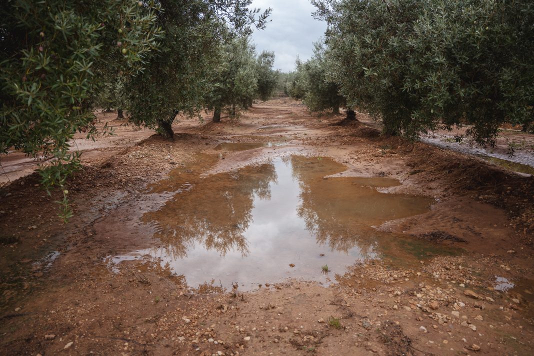 A l’espera de poder quantificar les pèrdues en la producció d’olivera i cítrics, l’entitat confirma “danys importants” en infraestructures com camins, murs i accessos a les finques, amb camins rurals tallats, regueralls a les plantacions o murs de separació malmesos pel desbordament de torrents, rieres i barrancs, a més de l’acumulació d’aigua en alguns espais i el flux “descontrolat” per les explotacions.