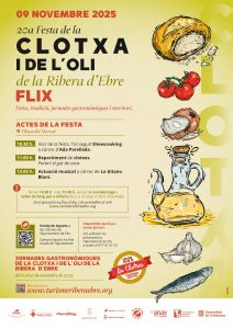 La 20a Festa de la Clotxa de la Ribera d’Ebre se celebrarà el diumenge 9 de novembre a la plaça del Mercat de Flix, i enguany ho farà amb una novetat destacada: la incorporació de l’oli com a protagonista, sota el nom de Festa de la Clotxa i de l’Oli.