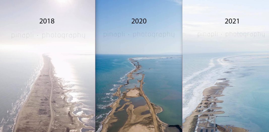 Jaume Vidal Arasa ha publicat a través del seu compte de Twitter tres fotografies de la barra del Trabucador del Delta de l’Ebre en tres anys diferents: 2018, 2020 i 2021. La primera és d’abans que els temporals Gloria i Filomena afectessin greument la morfologia deltaica. La piulada ha tingut més de 1.300 repiulades i més de 2.500 “m’agrada”. Les tres imatges han estat capturades pel famós fotògraf ebrenc Pinapli.