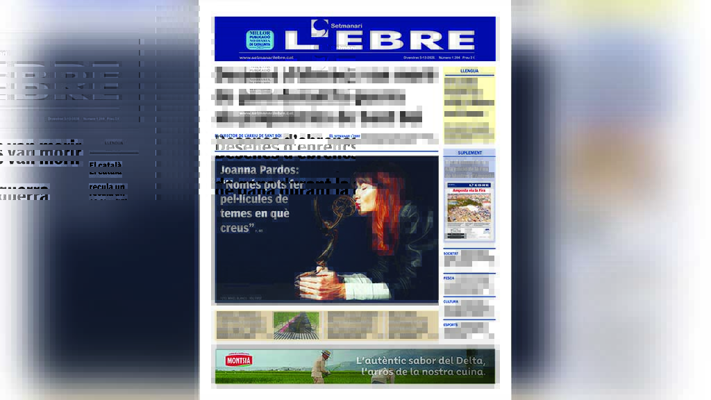 La imatge principal de portada és per a una fotografia de la documentalista rapitenca Joanna Pardos, amb l’EMI a les seues mans, que remet a l’entrevista que ha ofert al Setmanari l’Ebre i que es publica a plana sencera a la secció de Cultura.