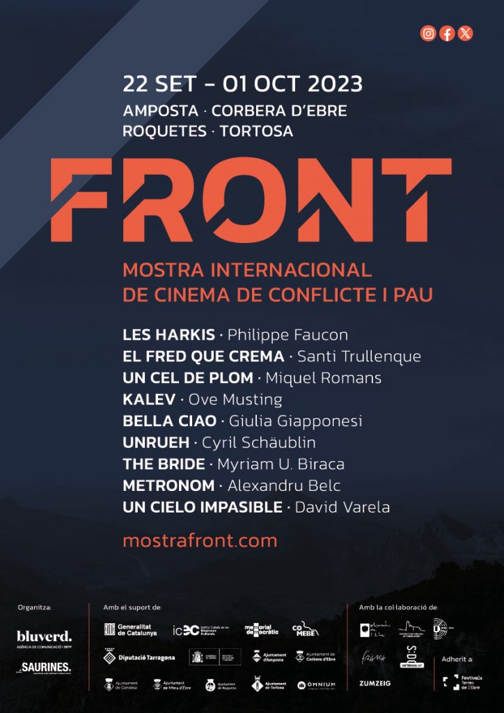 La Mostra passarà per Amposta, Corbera d’Ebre, Gandesa, Móra d’Ebre, Roquetes i Tortosa, i s’allargarà fins al diumenge 1 d’octubre. El certamen té la voluntat de fer emergir diàlegs i reflexions per indagar en la memòria històrica, els conflictes i la pau, i articular el pensament crític a través del cinema. Enguany, la mostra de cinema FRONT ha ampliat l’equip amb el programador, docent i crític de cinema Miquel Martí Freixas que ha ajudat a definir la programació de l’edició més internacional del certamen. S’hi podran veure films premiats en festivals internacionals provinents de França, Romania, Catalunya, Suïssa, Espanya, Estònia, Itàlia, Ruanda i Andorra.