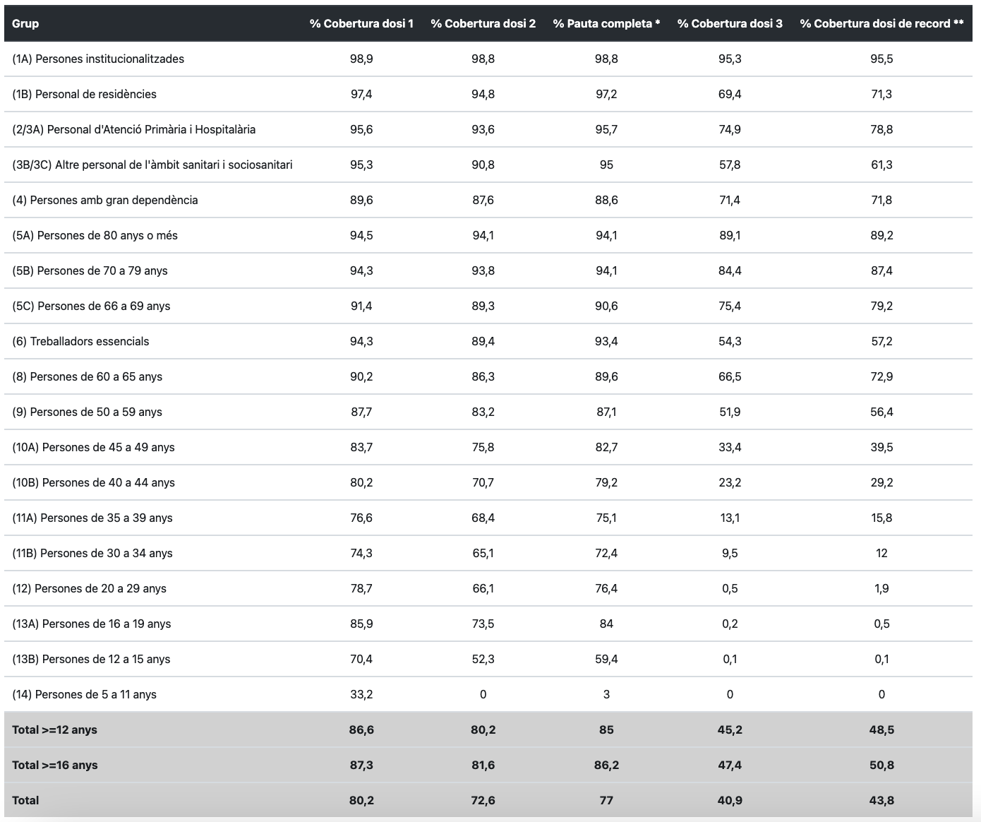 Els vacunats de la primera dosi arriben a les Terres de l’Ebre a 146.443 (80,2%) i a 141.424 (77%) les persones amb la pauta completa.