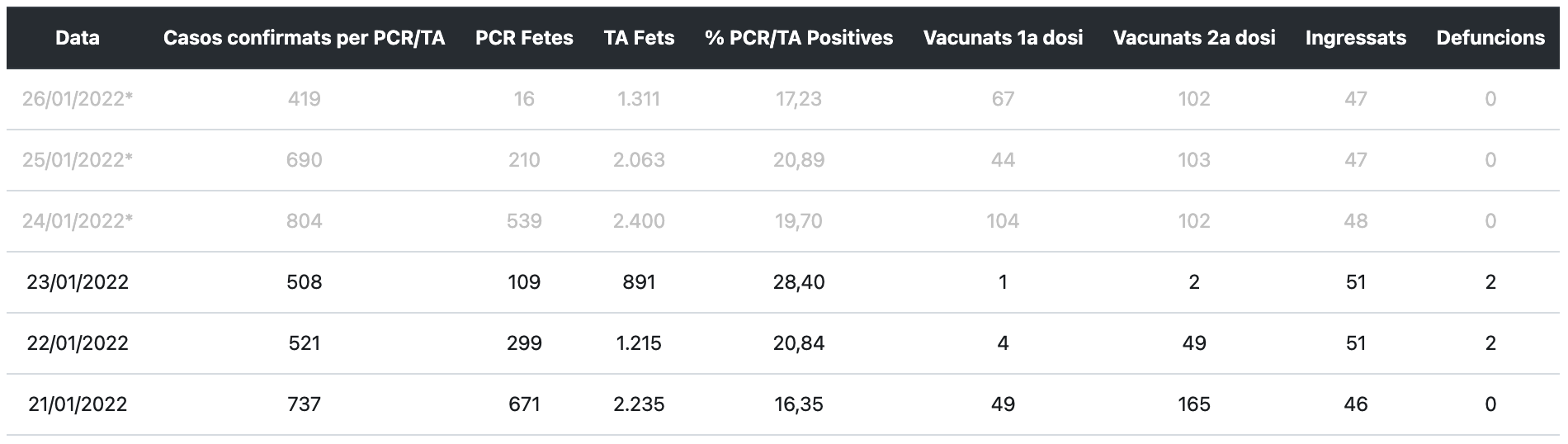 Segons dadescovid.cat, actualment hi ha 60 persones ingressades per Covid-19, dues més que ahir, 13 de les quals a l’UCI. A les Terres de l’Ebre han mort 226 persones des de l’inici de la pandèmia, cap més. Les últimes defuncions daten 23 de gener. La incidència a 7 dies és de 2.833 i a 14 dies és de 5.249. El 17,36% de les proves que es fan donen positiu.