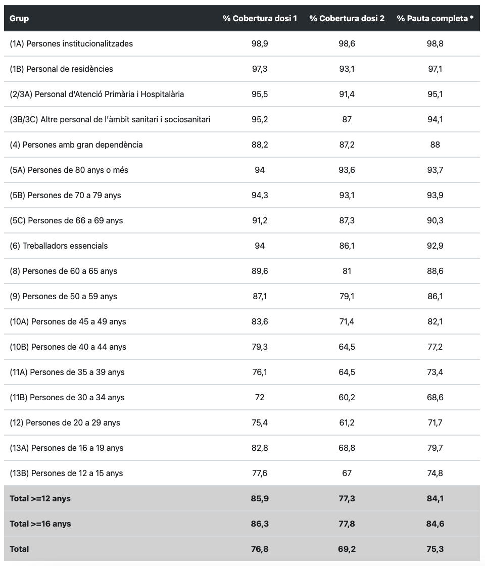 Els vacunats de la primera dosi arriben a les Terres de l’Ebre a 140.449 (76,8%) i a 138.000 (75,3%) persones amb la pauta completa.